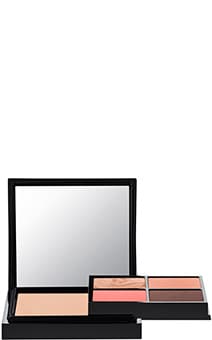 La paleta que creé — una combinación de polvo, rubor y crema. Puedes usarla para contornear, corregir y luego fijar con polvo o rubor. Para mí, es un sueño porque siempre llevo mil cosas en mi bolso y es mucho más fácil tener algo donde está todo junto.